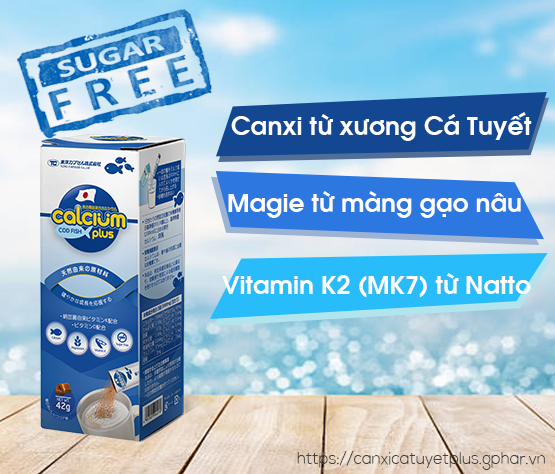 Calcium cá tuyết Plus - canxi hữu cơ từ xương cá tuyết Nhật Bản, bổ sung bộ 3 vitamin D3, K2-MK7 từ đậu nành lên men Natto, Mg màng gạo nâu. Công thức hoàn hảo tối ưu chiều cao và tầm vóc Việt.
