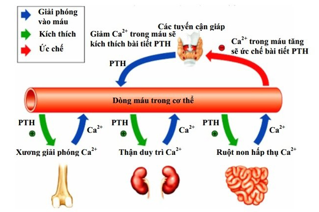 Duy trì mức nồng độ canxi ion hoá trong máu nằm trong phạm vi sinh lý rất quan trọng cho cơ thể hoạt động bình thường. Nồng độ canxi huyết thanh được duy trì thông qua hệ thống nội tiết, bao gồm vai trò của vitamin D - chủ yếu là calcitriol, và PTH – hoormon tuyến cận giáp.
